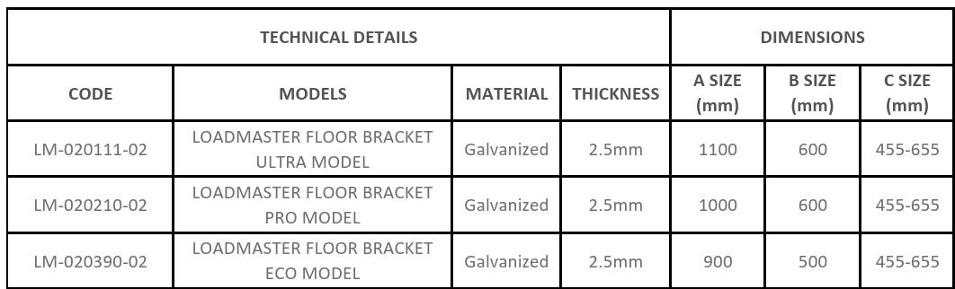 LoadMaster Floor Bracket Pro 1000(A)x600(B)x455-655(C)mm